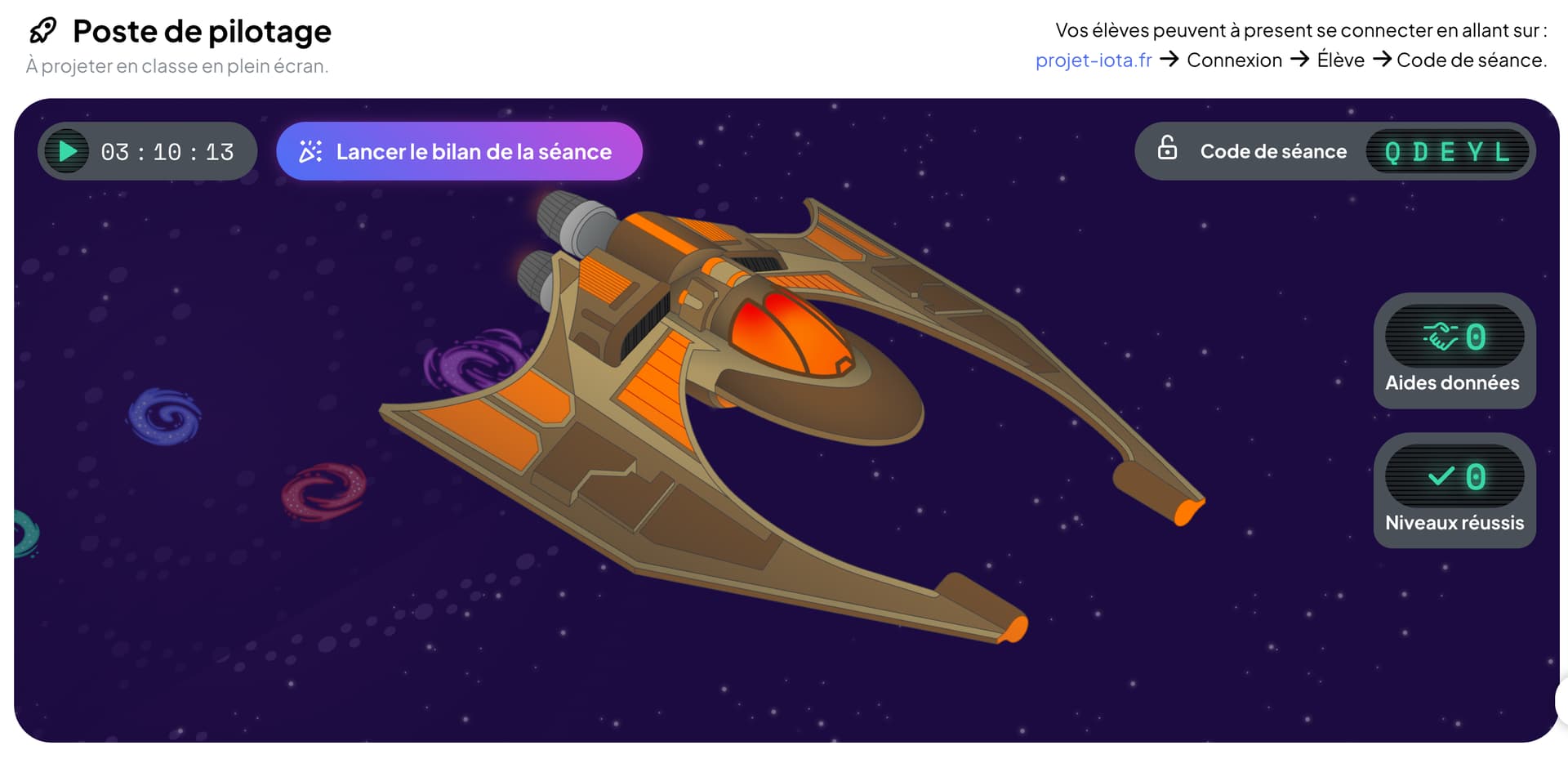 Oui, nous allons bientôt intégrer le mécanisme de « iotons » que les élèves vont gagner au fur et à mesure de leur progression (et capacité à collaborer) qui leur permettra d’upgrader le vaisseau de classe.